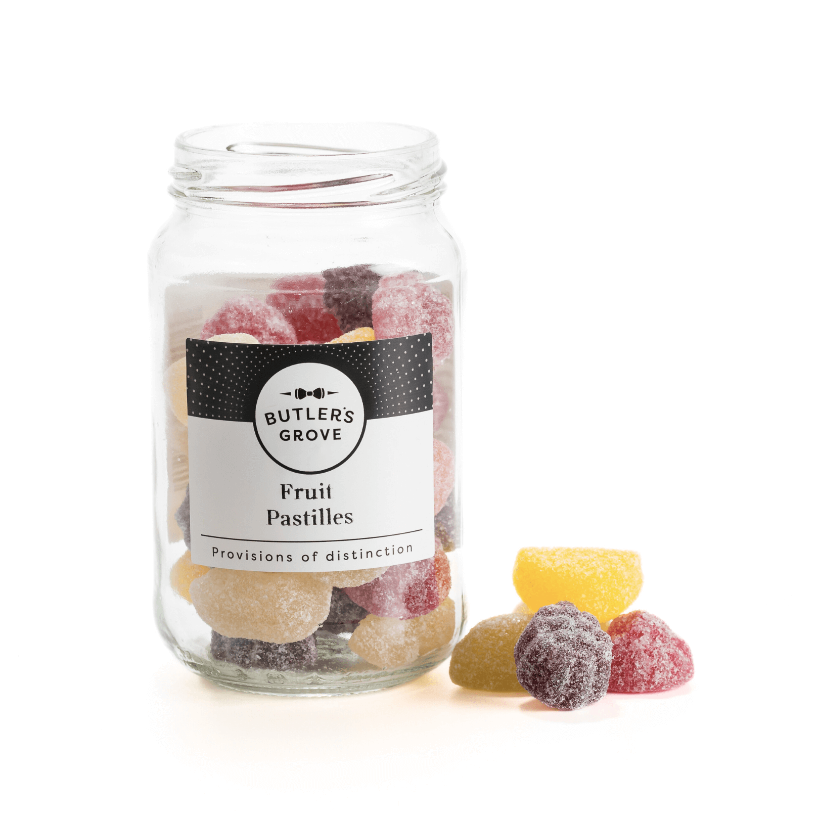 Delight in the juicy, nostalgic flavours of our Fruit Pastilles - soft, sugar-dusted sweets bursting with a variety of vibrant, fruity tastes. Each pastille is crafted for a satisfyingly chewy texture and a long-lasting flavour that evokes the charm of classic British confectionery. Presented in a stylish, reusable glass jar, they make a thoughtful gift or a cheerful treat for yourself. Perfect for sharing, gifting, or enjoying as a sweet moment of indulgence, our Fruit Pastilles bring a colourful burst of joy to any occasion.