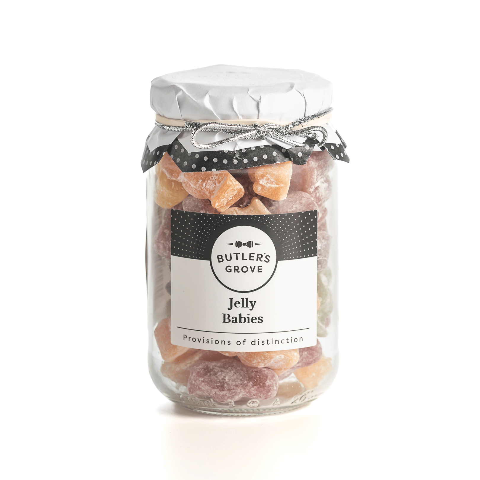 Savour the nostalgic charm of our Jelly Babies—soft, chewy sweets in an array of delightful flavours, shaped into cute, little characters. Each jelly baby is coated in a light dusting of sugar and delivers a satisfyingly fruity taste with every bite. Presented in a stylish, reusable glass jar, these Jelly Babies make a delightful gift or a sweet treat to enjoy yourself. Perfect for sharing, gifting, or indulging in a moment of fun, they bring a burst of colour and joy to any occasion.