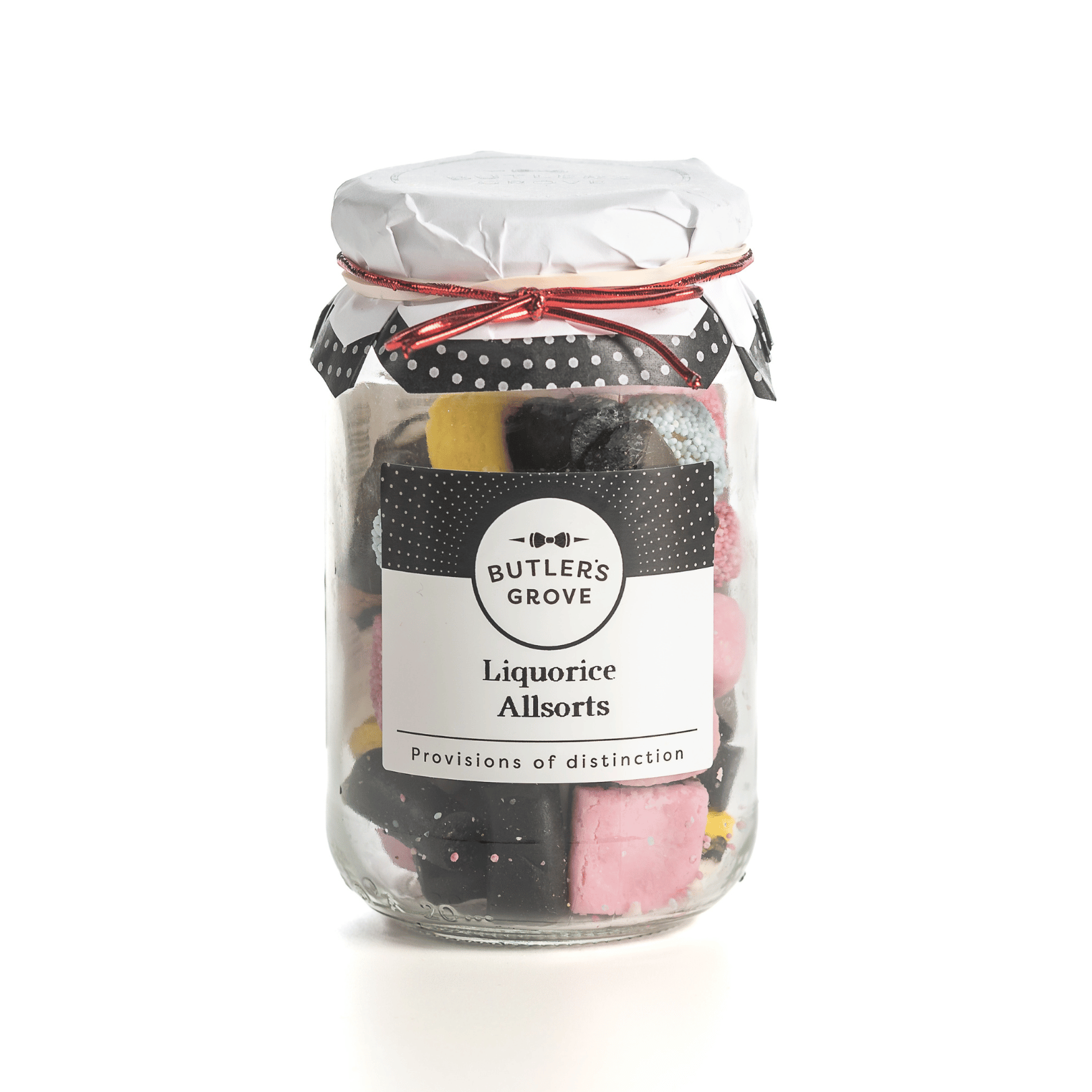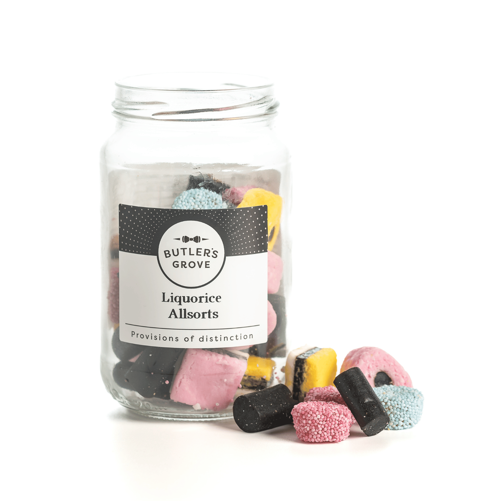 Indulge in the unique, nostalgic flavours of our Liquorice Allsorts - a delightful medley of colourful, soft liquorice sweets in a variety of shapes, textures, and flavours. Each piece is crafted to deliver that distinctive, rich liquorice taste paired with sweet fondant layers, creating a truly satisfying treat with every bite. Presented in a charming, reusable glass jar, these Liquorice Allsorts make a thoughtful gift or a special indulgence for yourself. Perfect for sharing, gifting, or simply enjoying on your own, they offer a timeless taste of classic confectionery charm.